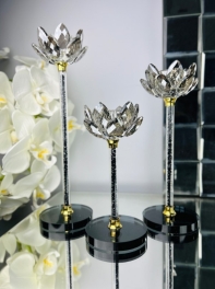 - Zdobienie: na nożce dekor w kształcie kwiatu lotosu, mieniąca się w świetle różnymi kolorami