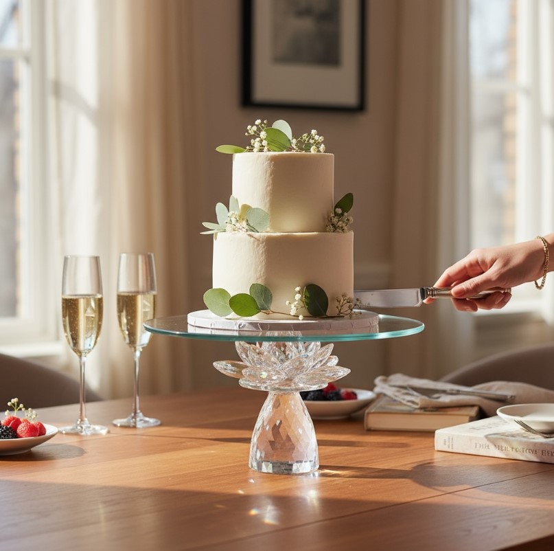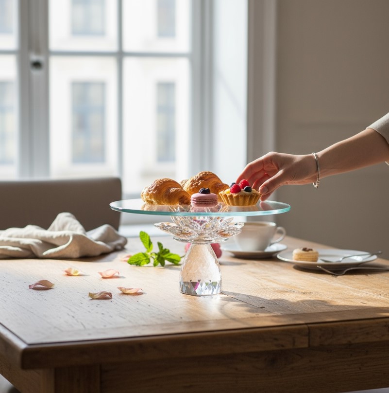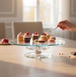 Ta misa na nodze łączy w sobie estetykę, trwałość i funkcjonalność – doskonale sprawdzi się do serwowania tortów, ciast, deserów, babeczek czy owoców, a jednocześnie będzie elegancką ozdobą stołu. Jej subtelne zdobienia i delikatne refleksy światła przyciągają wzrok, nadając aranżacji wnętrza stylu i klasy.