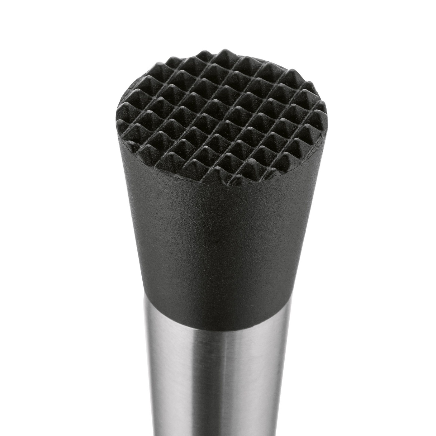 Muddler umożliwia skuteczne rozgniatanie liści mięty, szałwii, cytrusów oraz cukru – zarówno bezpośrednio w szklance, jak i w shakerze. Końcówka wykonana z czarnego tworzywa sztucznego ułatwia miażdżenie składników, nie uszkadzając przy tym naczyń. Ergonomiczna rączka ze stali nierdzewnej o satynowym wykończeniu zapewnia pewny chwyt i komfort użytkowania.