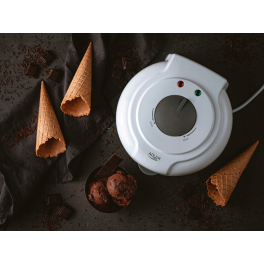 Waflownica Adler AD 3038 została stworzona z myślą o miłośnikach świeżych, złocistych wafli – w kilka chwil przygotujesz chrupiące rożki do lodów, rurki z kremem czy waflowe miseczki na ulubione desery. Duże płyty grzewcze o średnicy 18 cm pokryto nieprzywierającą powłoką, dzięki czemu gotowe wafle można łatwo wyjąć, a wnętrze urządzenia błyskawicznie wyczyścić. Płynny regulator temperatury pozwala dobrze kontrolować stopień wypieczenia, od delikatnie miękkich po mocno chrupiące. W komplecie znajduje się specjalny stożek formujący, który ułatwia nadawanie waflom kształtu rożków lub rurek.